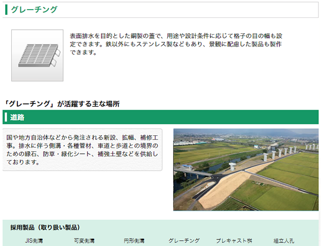 取り扱い製品の活用場所や採用製品・技術にイラストを活用!